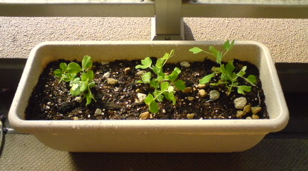 豆の芽、今朝お引越しました。