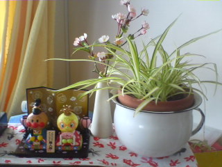まだ娘が落ち着いておらず、スペースもないので昨年購入したアンパンマン雛人形を。