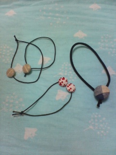 ボタン作って、それをゴムに通しただけですがね。簡単♪